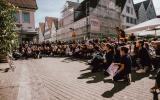 Jede Klassenstufe teilte während der Demonstration und der Kundgebung den Zuschauern ein Anliegen mit. Die Schüler der 5. Klassen machten auf die Plastikflut aufmerksam. Sie verkündeten im Chor "So viel Plastik bringt uns alle um!" und schlugen dabei mit Plastikflaschen im Takt, den ein Trommler vor den 5 Klässlern im Demonstrationszug angab. Die Schüler der 6. Klassen machten auf die Luftverschmutzung aufmerksam. Sie riefen im Chor "Die Luft ist verdorben, wir machen uns Sorgen!" und trugen alle einen Mundschutz. Wieder begleitete sie ein Trommler.