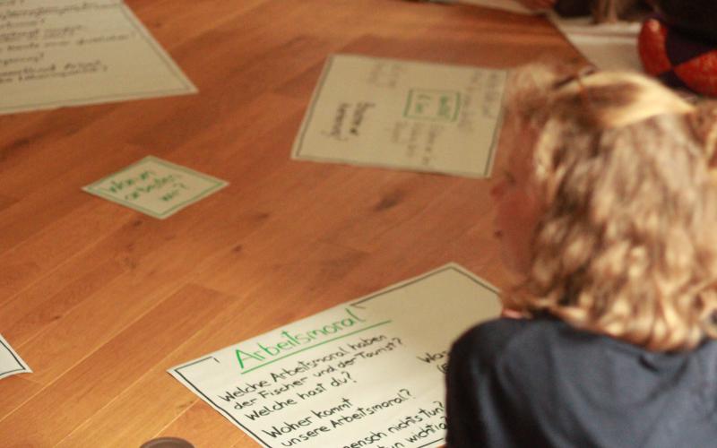 Zu Beginn haben wir auf den Begriff 'Wirtschaft' geschaut und uns gefragt, was der Sinn, das Ziel von Wirtschaft eigentlich ist. Wir haben im Dialog bemerkt, dass im heutigen Wirtschaftssystem das Bruttoinlandsprodukt eine große Rolle spielt. Daraufhin haben wir dieses "BIP" näher unter die Lupe genommen und diskutiert, welche Auswirkungen das auf uns, unsere Erde und das soziale Zusammenleben hat. So kamen wir zu Hartmut Rosas Beschleunigungs - und Resonanztheorie. Wir haben reflektiert, wann wir in unserem Leben versuchen, immer schneller, höher und weiter zu kommen und warum. Schon bald kam die Frage auf: Was kann ich tun, wenn ich bemerke, dass das Leben um mich immer schneller wird, wenn ich total unter Druck bin und mich selbst deswegen nicht mehr spüre? Nachmittags haben wir über Resonanz gesprochen, der aktiven Begegnung mit der Welt. Die Resonanz bildet laut Hartmut Rosa ein Gegengewicht zum beschleunigten Leben, weil in diesem Moment die Zeit keine Rolle spielt. Es geht um Balance und darum, in Kontakt mit sich und der Welt zu sein.